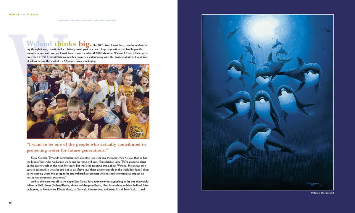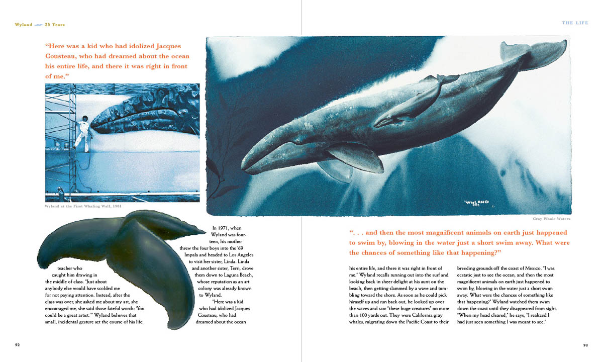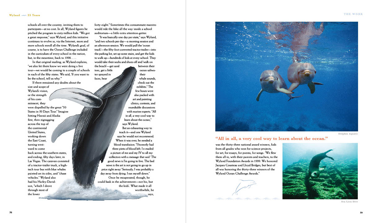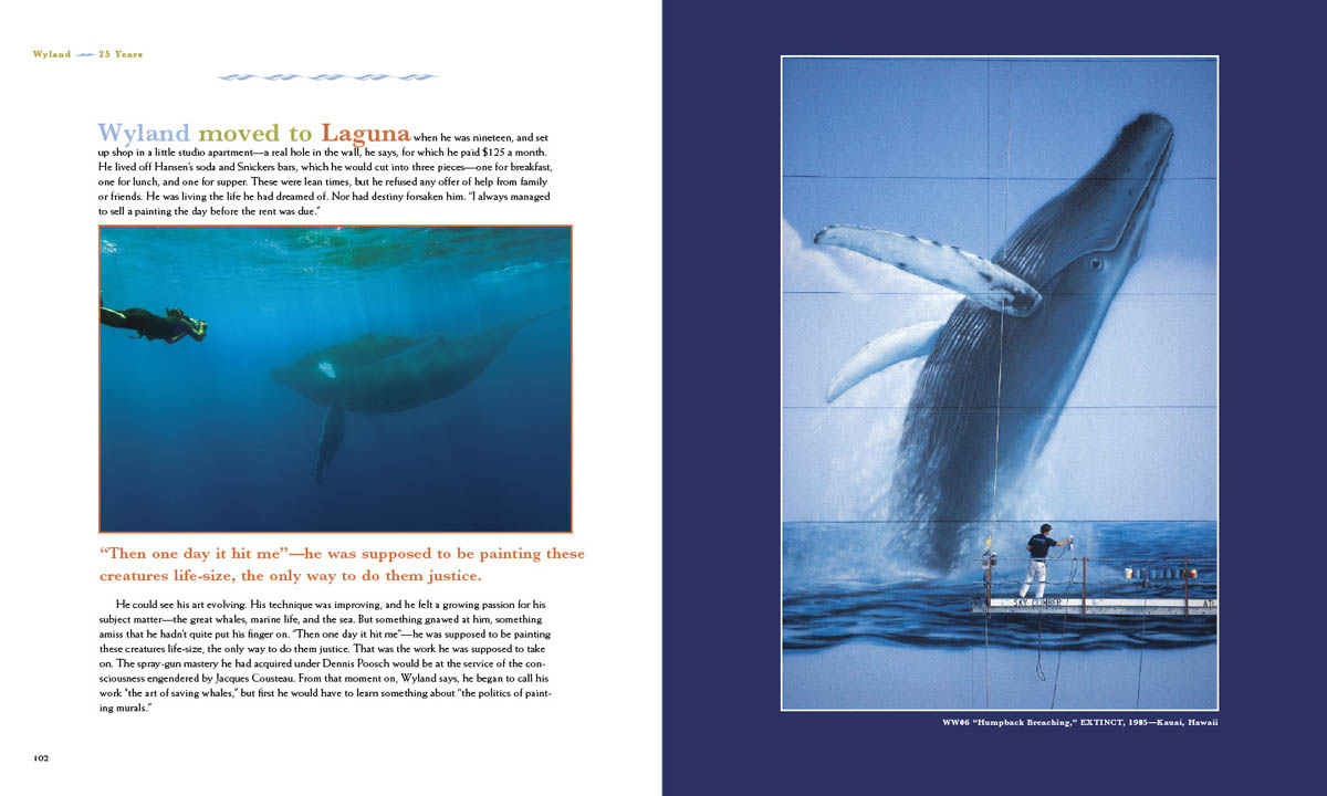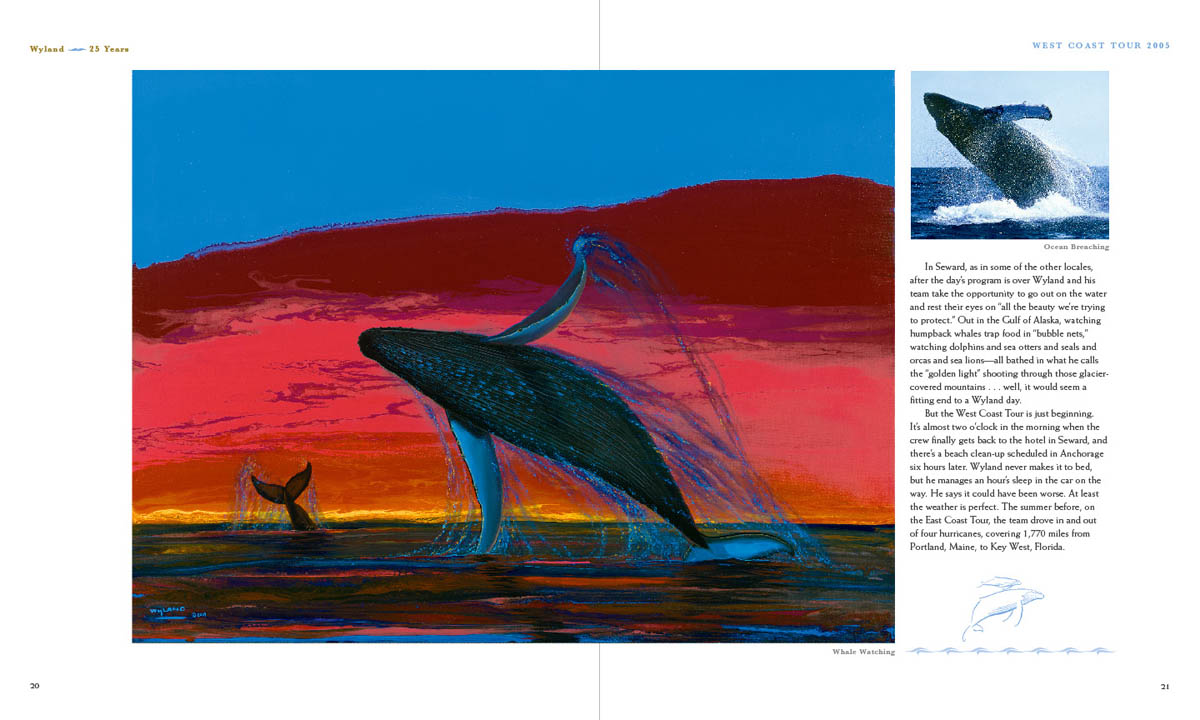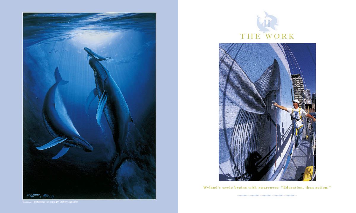 Wyland: Twenty-five Years at Sea opens the door to Wyland’s fascinating world of art and its power to make a difference in the earth’s future. Through its pages we experience the wonder of nature as seen through the eyes of this extraordinary artist, while deepening our understanding of the importance of our environment and all creatures that share it. Like an artist’s palette, this book mixes Wyland’s breathtaking work with a narrative that reveals the man’s personal world and his commitment to the earth.”